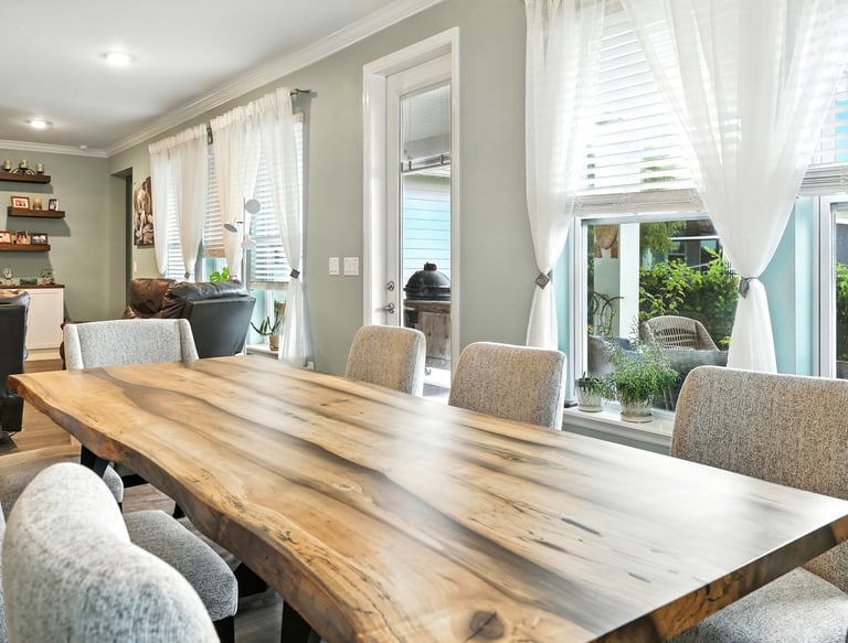 I couldn’t be happier with my custom magnolia live edge dining table that TJ from Castle Woodworks made. The craftsmanship is superb, the finish smooth as glass, the wood grain shines through beautifully and it is built to last. It is like a useable piece of artwork in my dining room. TJ kept me updated throughout the process and made sure every detail matched my vision. I have already gotten so many compliments. I highly recommend his woodworking if you are looking for quality and artistry in one.